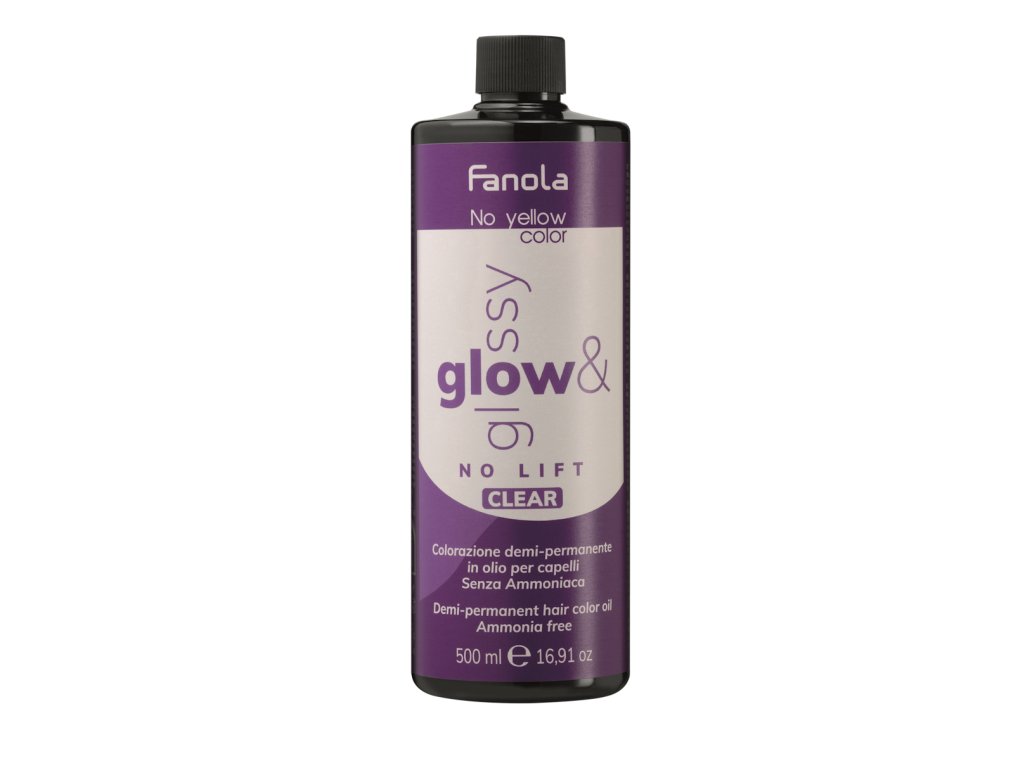 Glow & Glossy Clear je súčasťou inovatívnej rady Fanola Glow & Glossy, navrhnutej pre kaderníkov, ktorí chcú klientom ponúknuť luxusný lesk bez zosvetľovania a bez zásahu do farby. Vďaka technológii No Lift zostáva prirodzený alebo farbený základ vlasov nezmenený.