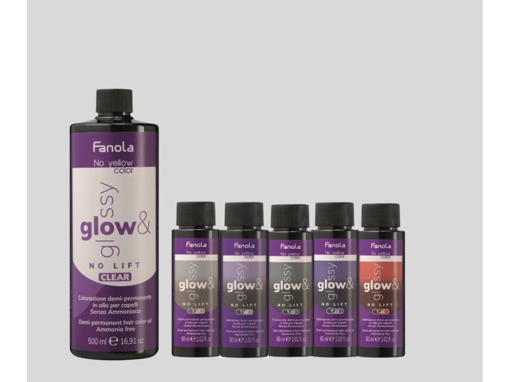 Fanola Glow & Glossy Toner bol vyvinutý pre kaderníkov, ktorí požadujú precízny výsledok, vysoký lesk a šetrné zloženie. Vďaka olejovej, bezamoniakovej a vegánskej receptúre poskytuje žiarivý, kontrolovateľný výsledok bez poškodenia vlasovej štruktúry.